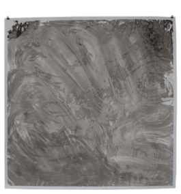 Um einen unmittelbaren Bezug zu unserer Alltäglichkeit herzustellen und die im Schatten stattfindende Tätigkeit zu erleuchten, werden die Flure mit einer Farbmischung gewischt und die Zeichnung in den Raum gebracht. Ein Stoß an der Heizung. Die Unebenheit der Fliesen. Tinte, die sich in kleinen Pfützen an den Rändern der Fugen sammeln. Die wiederkehrenden Wischbewegungen, die jeden Zentimeter des Bodens füllen.
